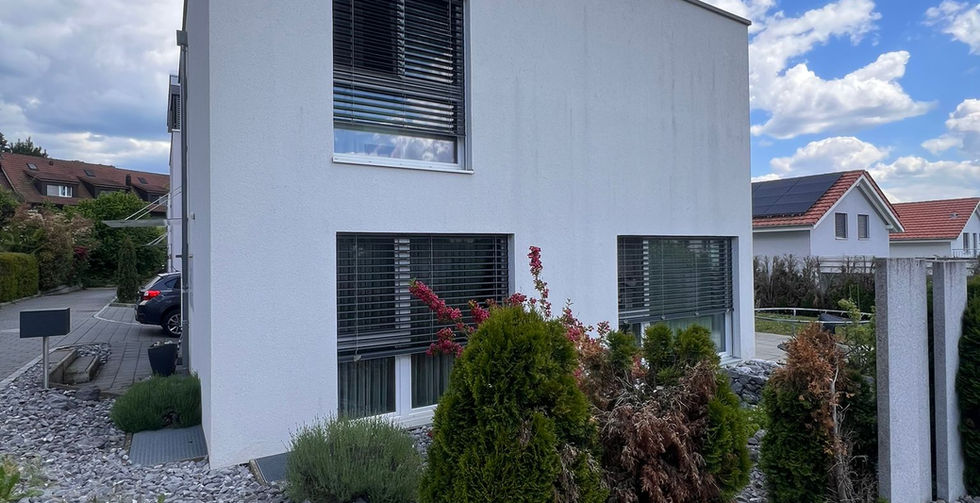 Dieses 2014 erbaute Haus liegt idyllisch im Grünen in einem familienfreundlichen und ruhigen Quartier.